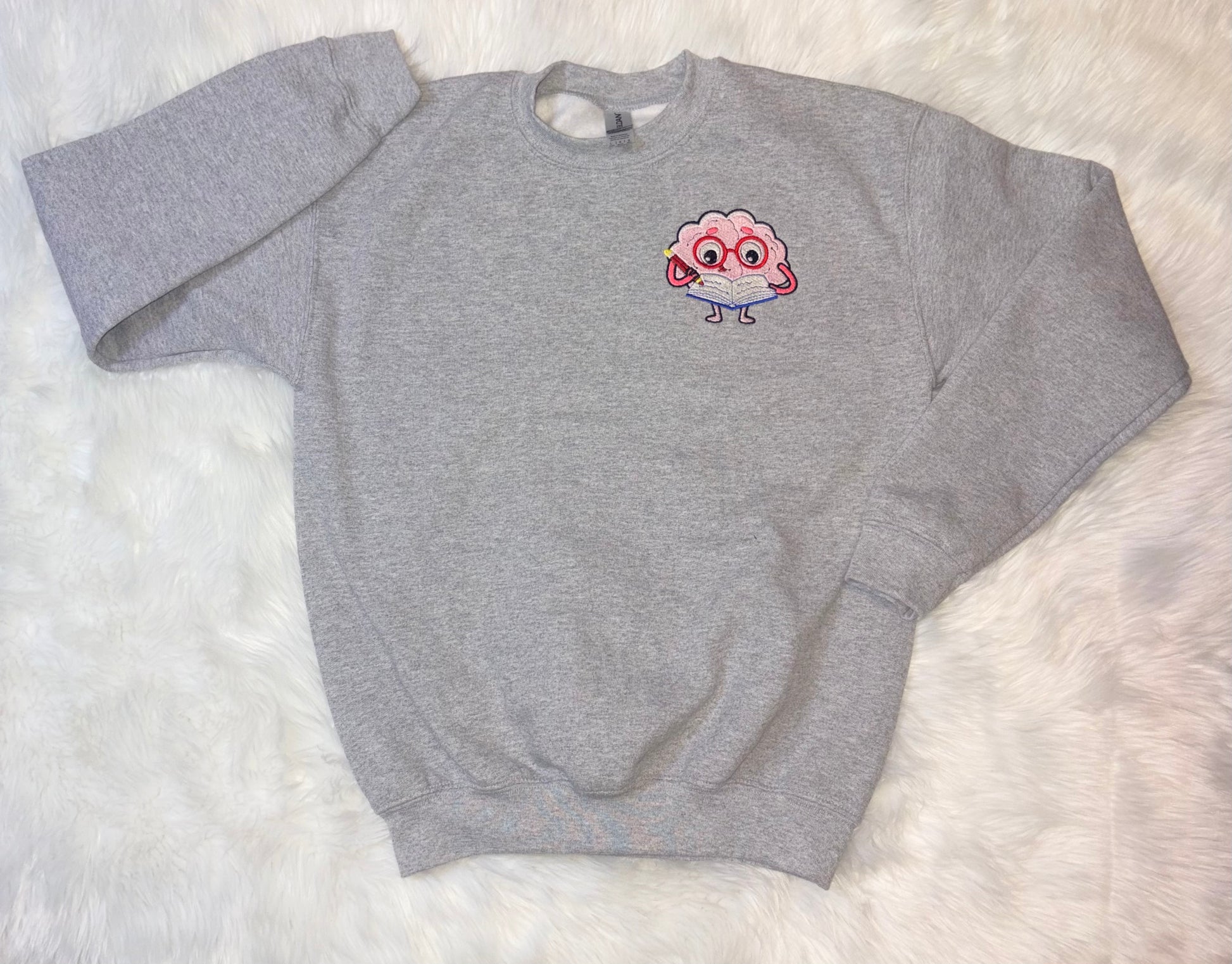 Add a touch of whimsy and intellect with A Human Brain Read Book! This cozy youth sweatshirt features a playful cartoon brain with anthropomorphic features, combining the joy of reading with the intrigue of the human brain. Made of a soft 50/50 cotton poly fleece blend and embroidered for durability.